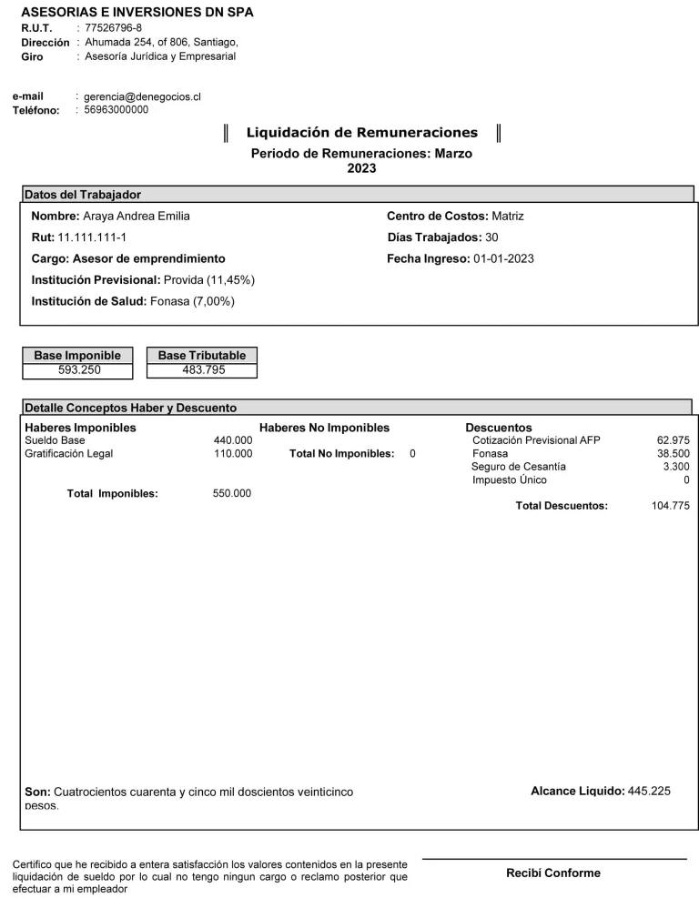 - Salud: Aporte al sistema de salud, ya sea público (FONASA) o privado (ISAPRE).